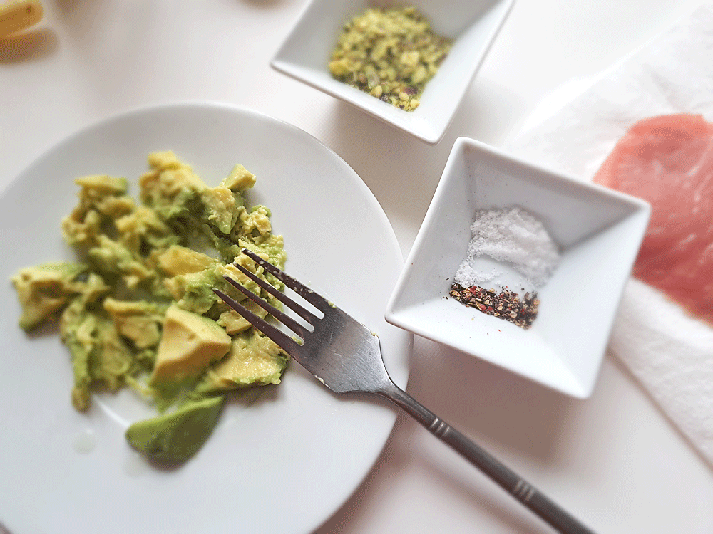 1. Pelez et dénoyauter les avocats. Ecrasez-en finement la chair à la fourchette.