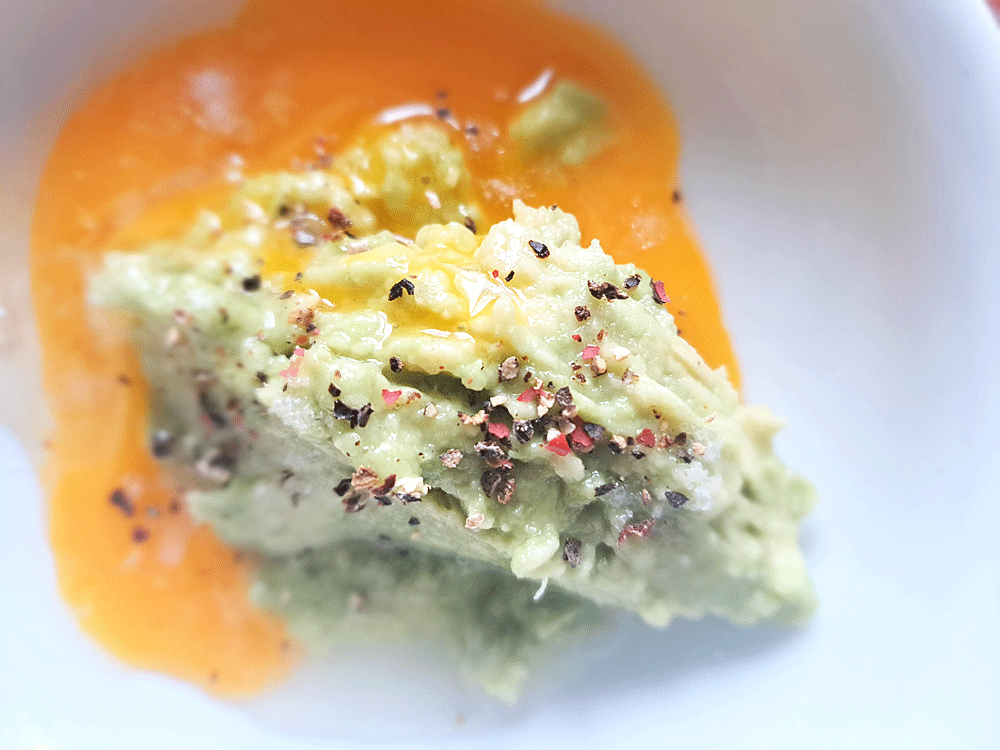La crème d’avocat apporte vraiment ici une saveur douce et homogène à la texture de la viande.