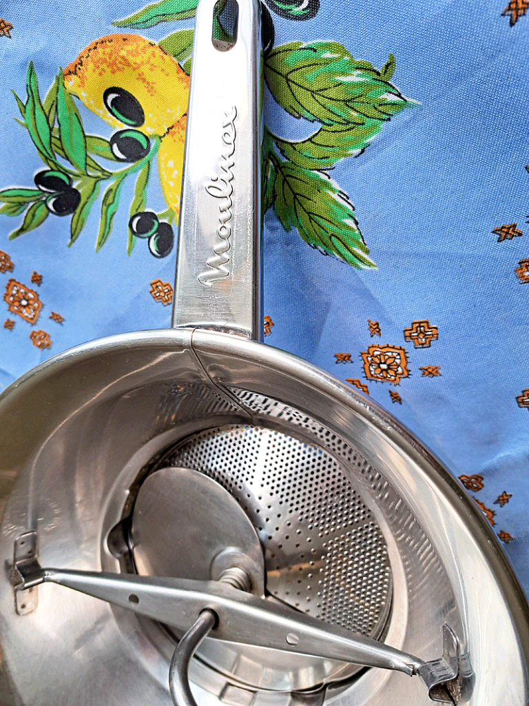 C’est vrai que sous son air rétro, il nous est encore bien pratique dans les chaumières le moulin-à-légumes Moulinex. Surtout lorsque la grille de mon mixeur plongeant n’a pas le même résultat que celle de ce type de moulinette.