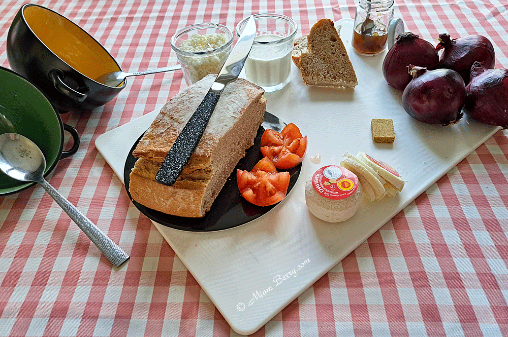 Les anciens l’adorent ! Mais la soupe aux oignons n’est pas typiquement issue du Berry. Autant dans d’autres régions, on la partage volontiers depuis des époques assez reculées même. C’était parait-il, la soupe du pauvre. Pour dire plutôt que c’était la soupe hivernale pas onéreuse pour un sou. Alors pour la rendre encore plus goûtue que nous la connaissons, je n’ai pas hésitée à improviser celle-ci autour des produits de notre terroir issus de mes applettes du marché de ce samedi 11 février…