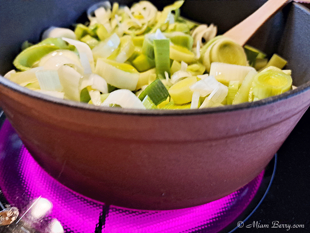 1. Nettoyer les poireaux sous l’eau, puis les entre du papier absorbant et tailler en rondelles.