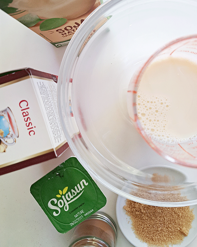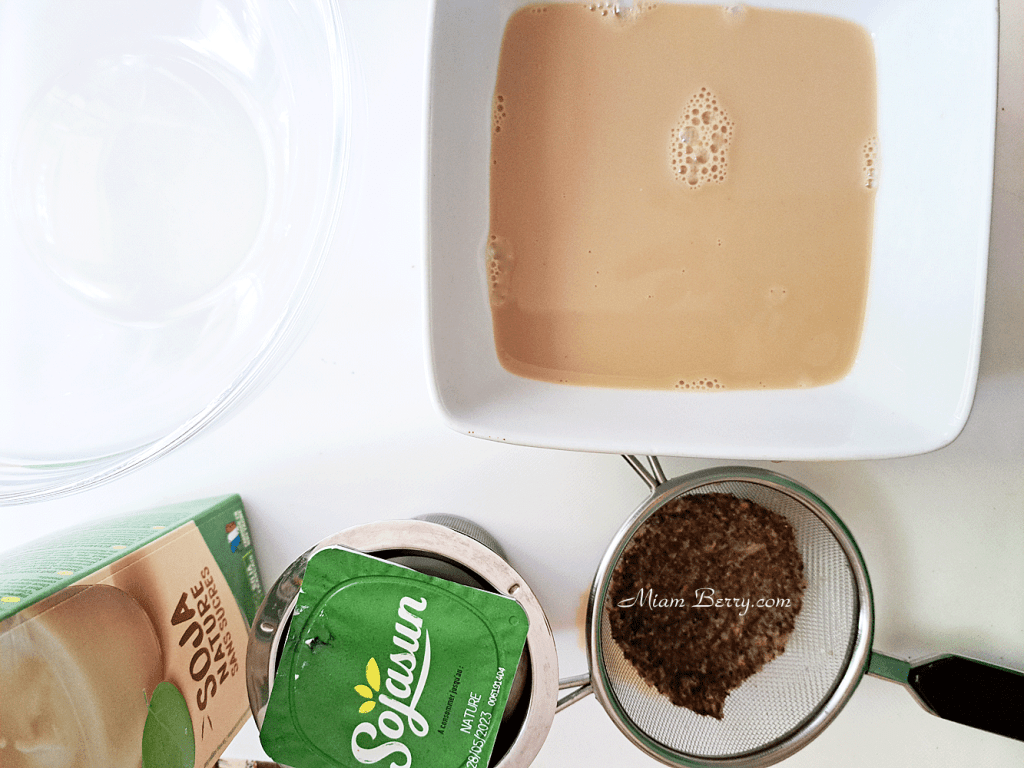 J’ai utilisé du lait de soja nature, non enrichi en calcium ajouté, car cela empêcherait le yaourt de prendre.