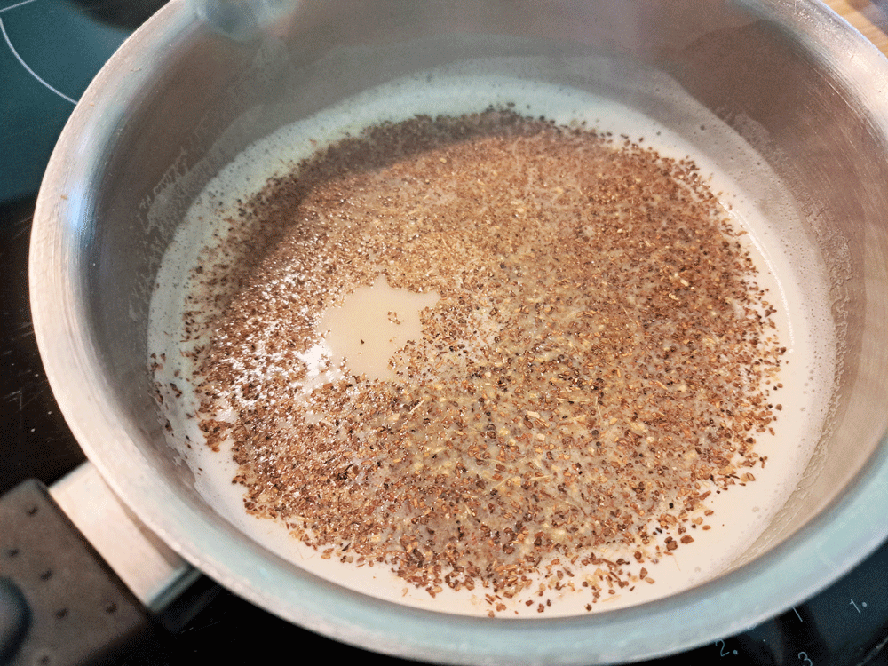 1. Dans une casserole, portez à ébullition 30 cl de lait avec le sucre. Réduire le feu, puis ajouter le Yogi Tea. Laisser frémir encore 2 mn, puis laissez infuser, jusqu’à complet refroidissement du liquide.