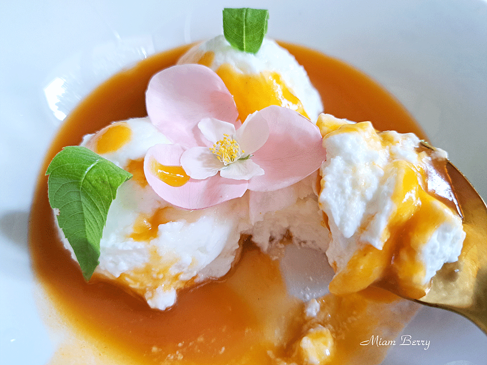 Ce n’est pas tant le seringat que le fromage de chèvre frais sur lit de coulis d’abricot qui fait sens à cette délicieuse gourmandise rafraîchissante. Les pétales de la délicate Nohéma – divine rose de couleur dragée, à mi-chemin entre la rose anglaise ancienne, dotée d’une pointe de modernisme qui lui sied à merveille et la fait durer plus longtemps (à comparaison). De retour, les fleurs de seringa et celles des roses font à elles seules une superbe association ! Ma recette est facile, j’espère que vous trouverez de quoi satisfaire votre envie par la recette que je vous partage volontiers aujourd’hui.