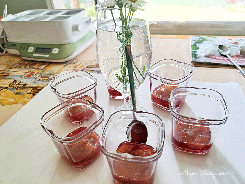 Même déclinée dans un yaourt, la rhubarbe du jardin mérite une présentation digne d’elle. La recette que je vous propose aujourd’hui, est extraite du livret de ma première yaourtière « Délices ». Vous remarquerez à ce propos que je mentionne pour chacune des recettes de cette même thématique, la diversité de tags, selon que je réalise mes yaourts avec le livre de recettes « Délices » ou bien » Multi Délices & Végétal ». J’ai adapté les proportions de mon ex / 12 à ma nouvelle yaourtière, voici ce que cela donne…
