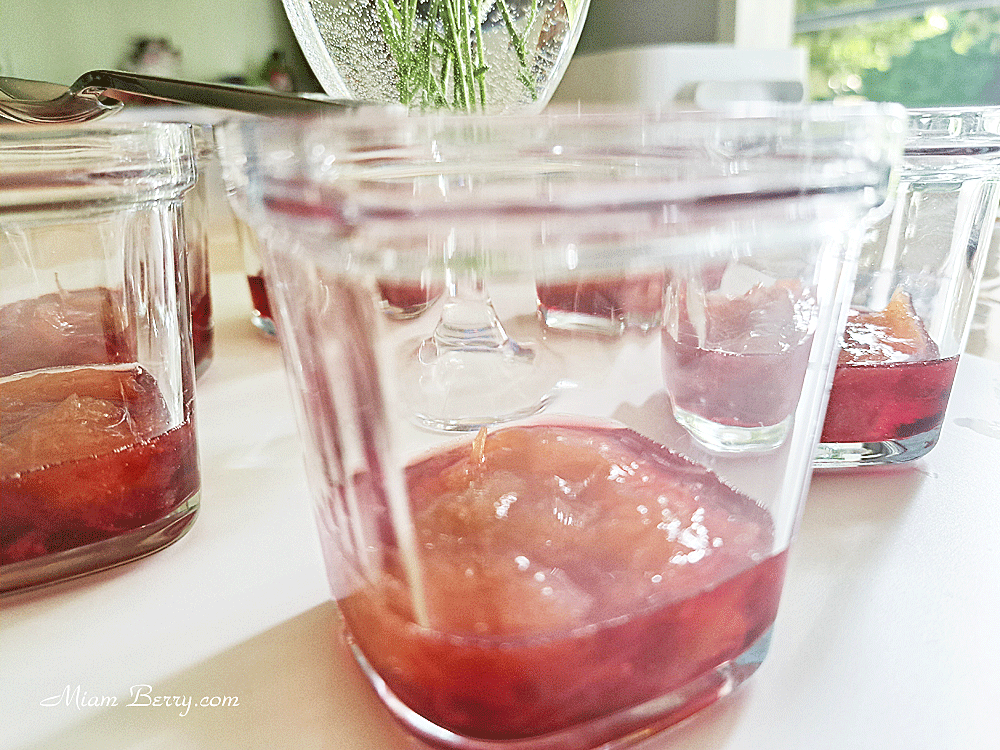 La cuillère à café de grenadine, versée en fond de pot avant la rhubarbe, cela peut sembler insignifiant, mais en réalité, s’est harmonieusement unie à celle-ci, qui atténue l’acidité.