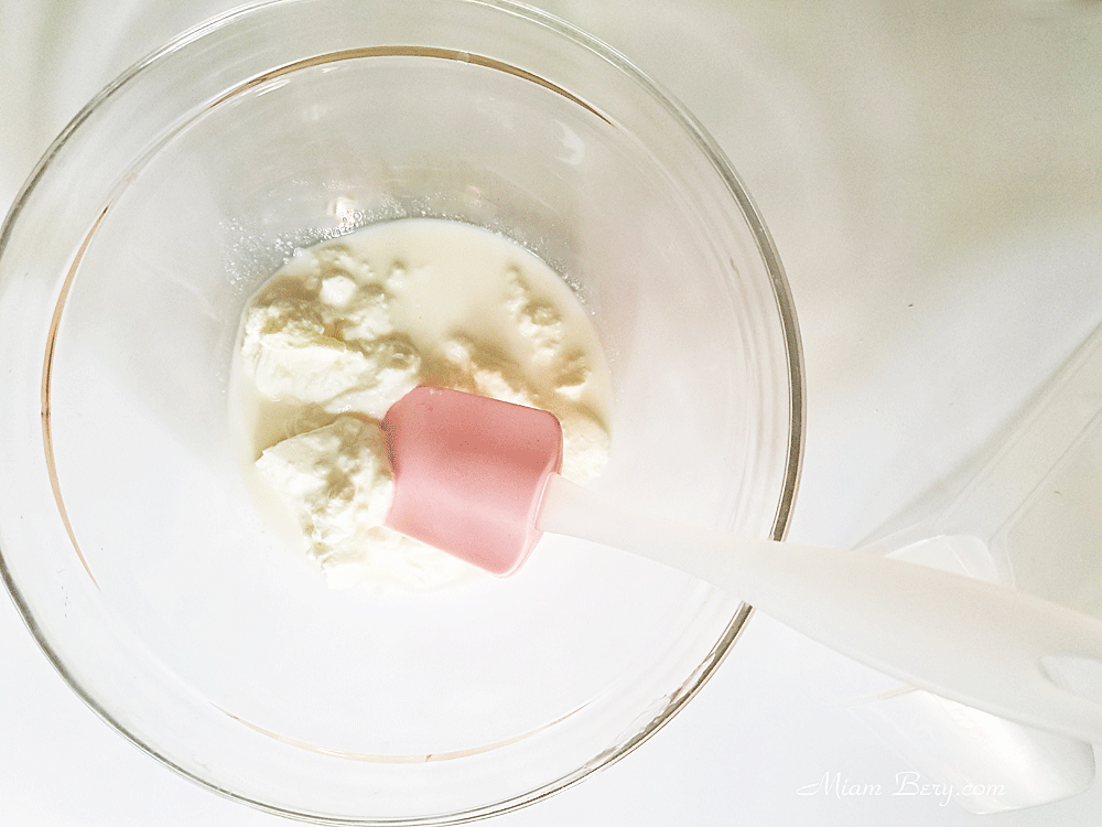 2. Mélangez le yaourt avec un peu de lait, jusqu’à ce que la préparation soit homogène. puis versez le restant de lait.