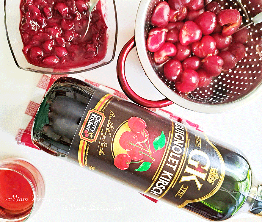Kirsch est un mot allemand qui signifie « cerise ». Vu que le dessert que je vous propose aujourd’hui est composé du fuit juteux du printemps, j’ai trouvé bon d’essayer ce trifle avec.