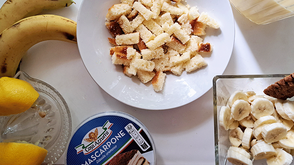 3. Pressez le citron pour en recueillir le jus dans un bol. Epluchez 2 bananes et les couper en rondelles fines, puis les imbiber du jus du citron (ainsi, évite le noircissement du fruit).