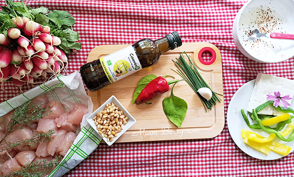Aujourd’hui, je cuisine des incontournables de l’été, des brochettes. Accompagnées d’une salade de radis, cela fait l’entrée idéale d’un déjeuner, dîner. Il y a un peu de préparation au préalable – je veux dire que c’est une réalisation moins rapide que de fendre 1/4 de baguette pour le garnir de beurre et une tranche de jambon. Mais le pas-à-pas de la recette est facile et surtout, le résultat ne devrait pas vous décevoir. D’autant qu’une partie se prépare la veille.