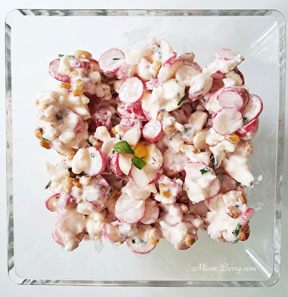 Mélanger, salez, poivrez et réfrigérez. Vous verrez comme cette petite salade est délicieusement aromatisée !