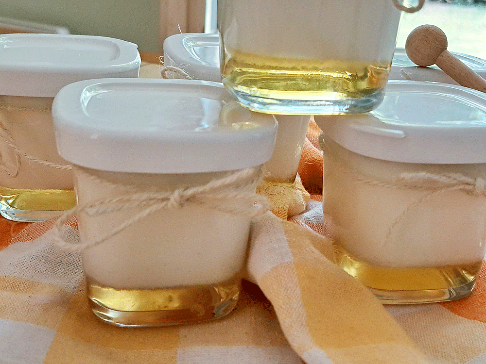 J’ai eu la flemme d’aller faire les courses hier. Cette journée à écouter le vent rugissant ne m’y sollicita pas, en tout cas m’en a dissuadée. Alors j’ai juste imaginer un petit yaourt craquant : fond de sirop, du lait entier, 1 yaourt nature. Le tout bien mélangé, qui allait faire le job en heures creuses. Ce matin, je n’avais plus qu’à mettre les couvercles sur chaque port et hop ! au réfrigérateur après les avoir passé au jardin quelques secondes pour photos sur ce 3 août et mois solaire. Si, si !!