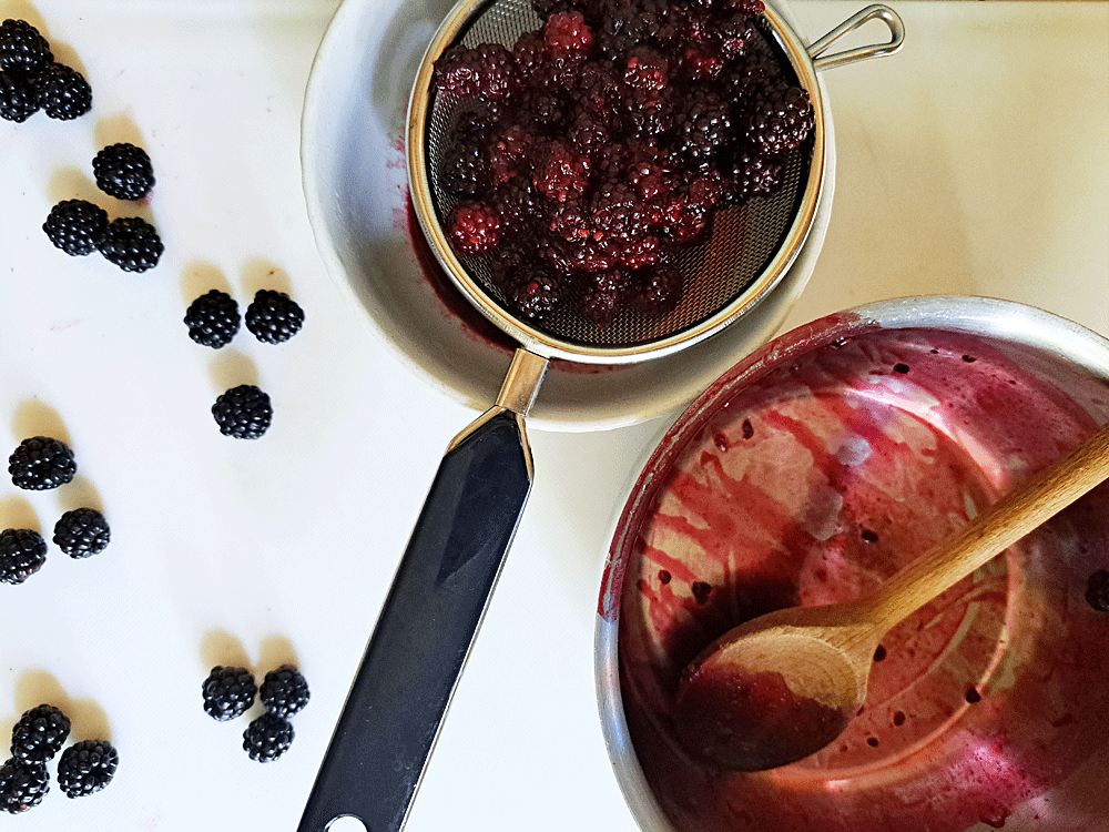 Si vous aussi êtes allé à la campagne pour une cueillette de mûres, de retours, vous aurez peut-être envie de réaliser une petite quantité de confiture juste pour les ajouter à la préparation de vos yaourts. C’est extra ! Plus encore, lorsque l’on passe les petits grains de la mûre à la passoir, pour n’en recueillir seulement que la chair du fruit.
