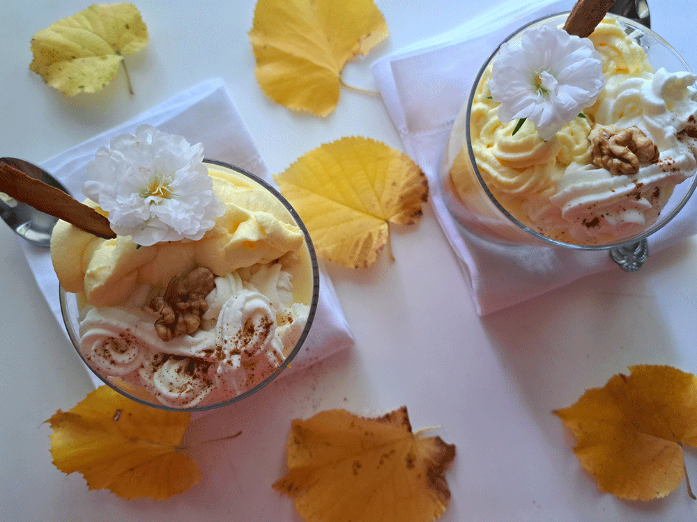 Voyez comme ce n’est pas « sorcier » de suivre les étapes d’un trifle que j’ai imaginé à plaisir gustatif, au couleurs de l’automne, du terroir du Berry, jusqu’à ce duo de crème chantilly.