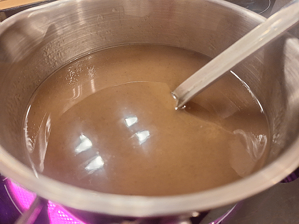 4. L’ensemble purée – eau – sucre est délicatement mélangé, poursuivant la cuisson sur feu doux, en remuant, jusqu’à ce que le sucre soit bien fondu. Encore une petite vingtaine de minutes nécessaires à la texture finale d’une délicieuse confiture !