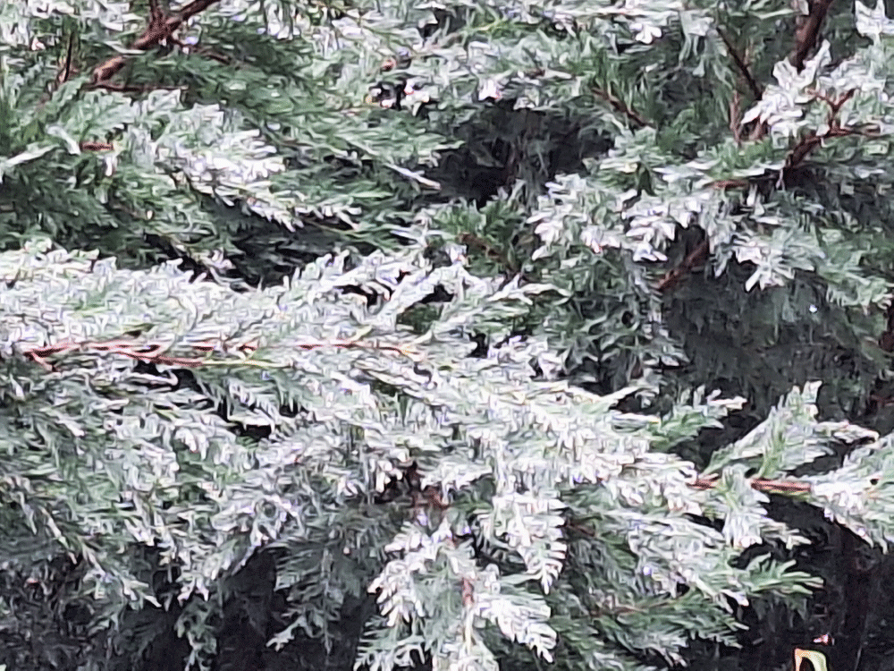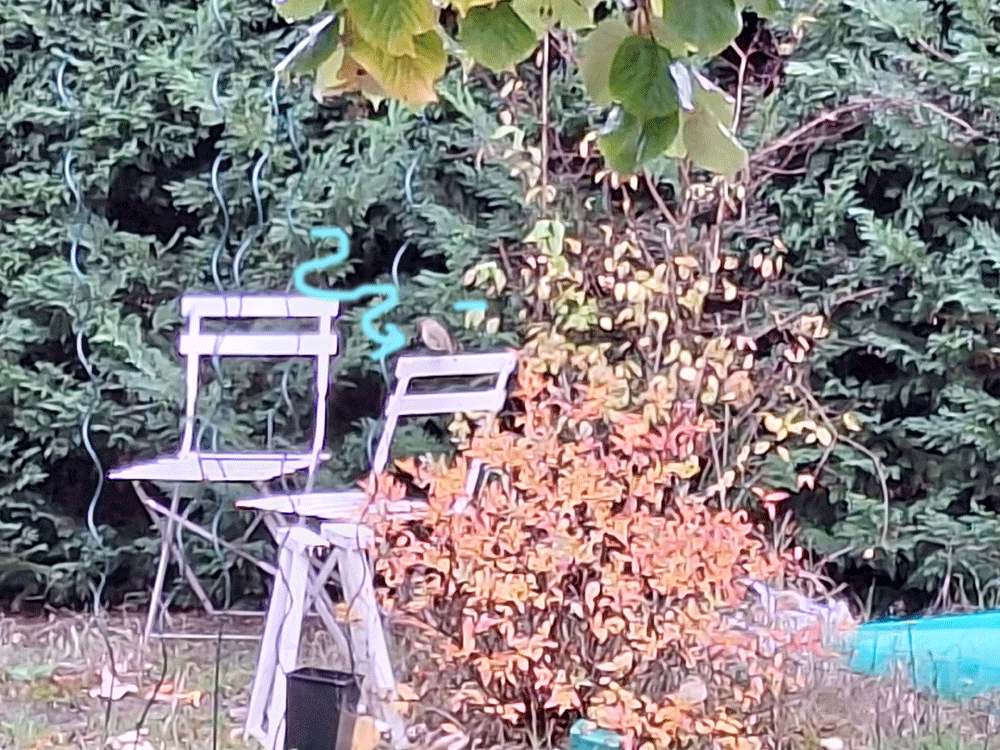 De très loin. Sans aucun doute trop loin, pour que cet arrêt sur plaisance soit net. C’est un familier du jardin, moins du potager ou rarement. Il y a des semaines déjà, qu’il fait reparait au fond du jardin. Virevoltant inépuisablement du pommier aux cyprès bleus, des branches d’une saison passées en mémoire de lilas – qui lui, patentera jusqu’au printemps – le rouge-gorge veut examiner de haut la situation ! Et lorsqu’il ne se montre pas, je l’entends, par sa partition sonore si particulière.