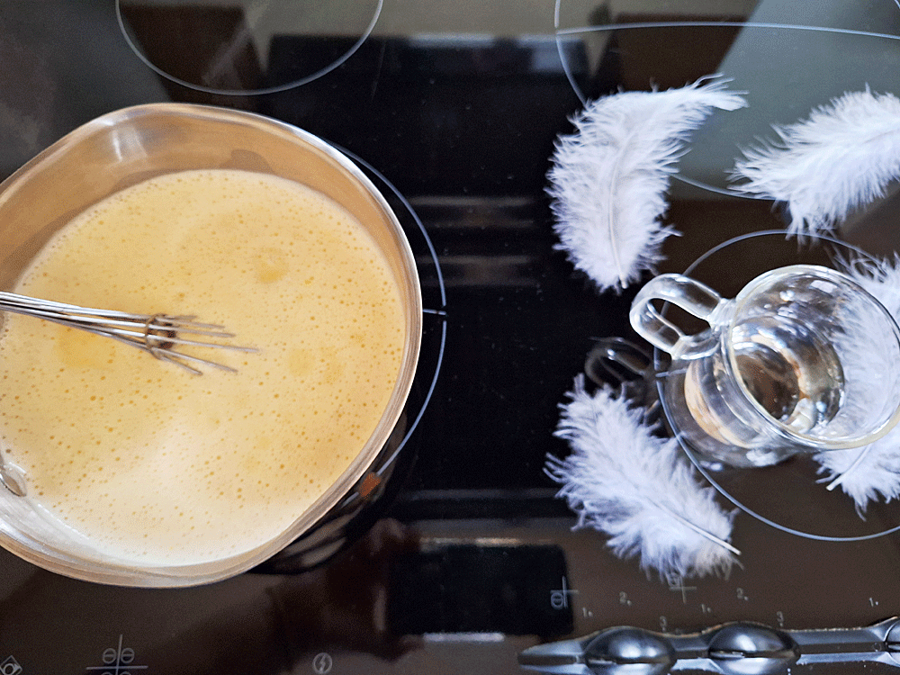 Mon frère en a fait une tournée dimanche et on s’est régalé avec le lait de poule. Nous n’en faisons pas, on préfère quand même le vin chaud que nous buvons au marché de Noël où tu sais.