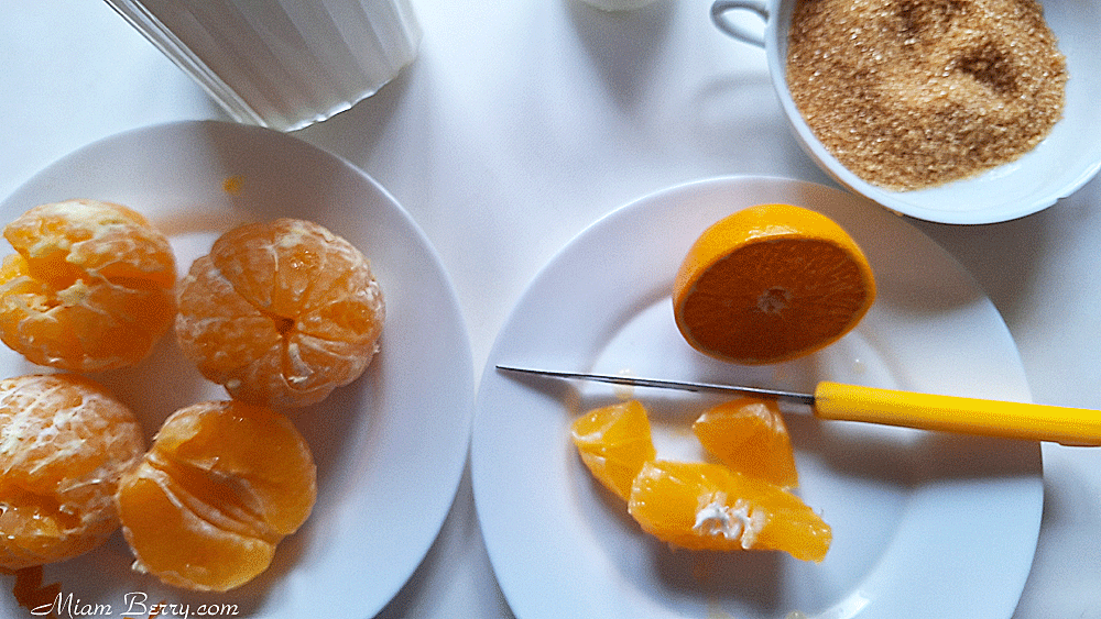 - Après avoir pelé les agrumes, j’ai détaillé chacun en morceaux par très gros.