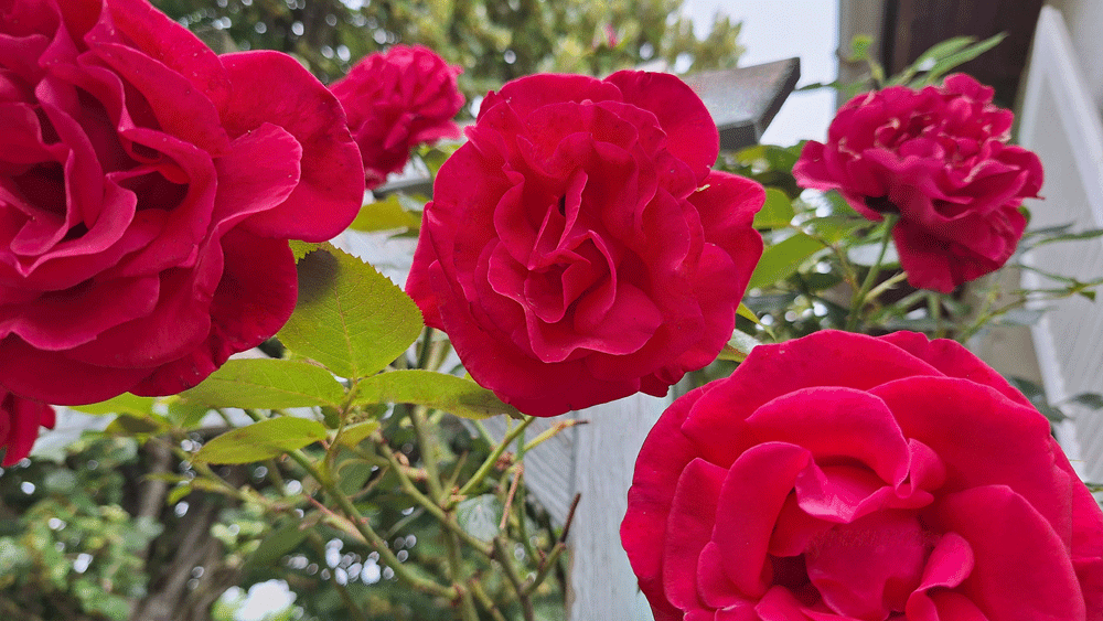 Les roses sont encore belles en ce moment, c’est vrai. Le grimpant Noéma s’est quelque peu défleuri en partie, par le chauffage d’appoint solaire depuis 2 semaines. Mais c’est un remontant. Remarquez-le aussi chez vous, les rosiers rouges sont toujours plus résistants par nature. Parmi vous, je connais des amis de forum qui ont de jolis rosiers, d’où mon petit complémentaire entre passionnés avertis…