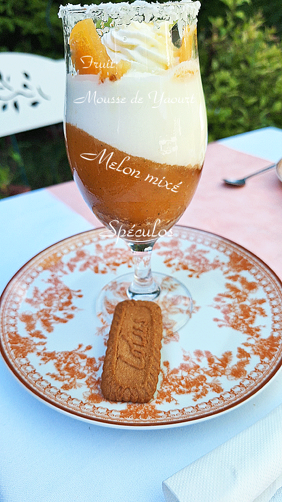 Une délicieuse façon de savourer une mousse de yaourt nature, je l’ai accompagnée d’un melon à la saveur gustative extra, parfaite, en superposant les différents ingrédients, respect pour la tradition Britannique d’où est issu le fameux dessert bien nommé et gourmand à souhait : trifle.