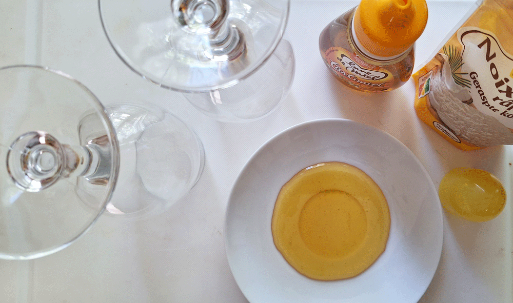 1. Tremper le haut des verres dans le miel, puis dans la noix de coco.