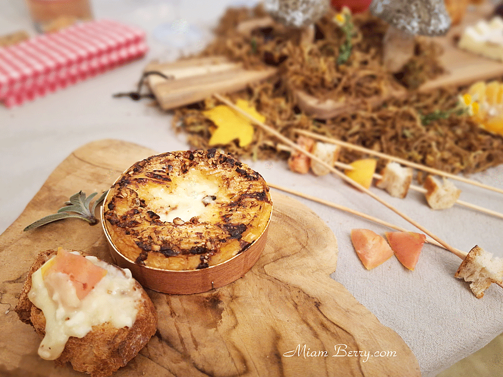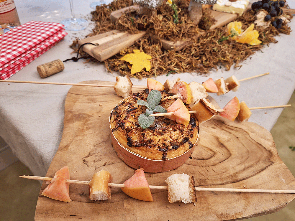 5. Une fois que le camembert est bien crémeux et sent bon, le sortir du four (attention, ça chauffe !). Une petite astuce : plonger le pain dans le fromage comme si vous plongiez dans une piscine à vagues. Ça devrait faire des heureux ! Une autre alternative est de plonger quelques brochettes préalablement préparées pour intervenir dans ce bain des saveurs fondantes normandes.
