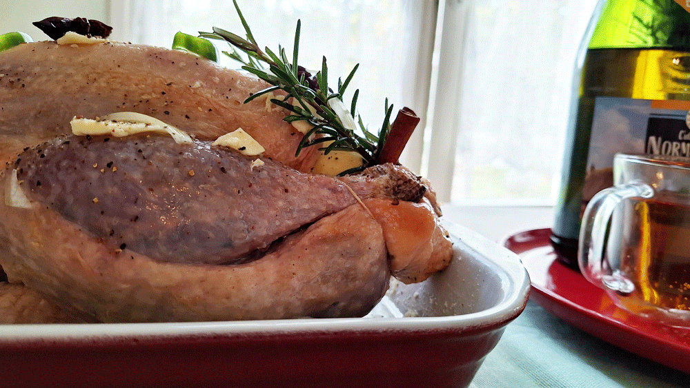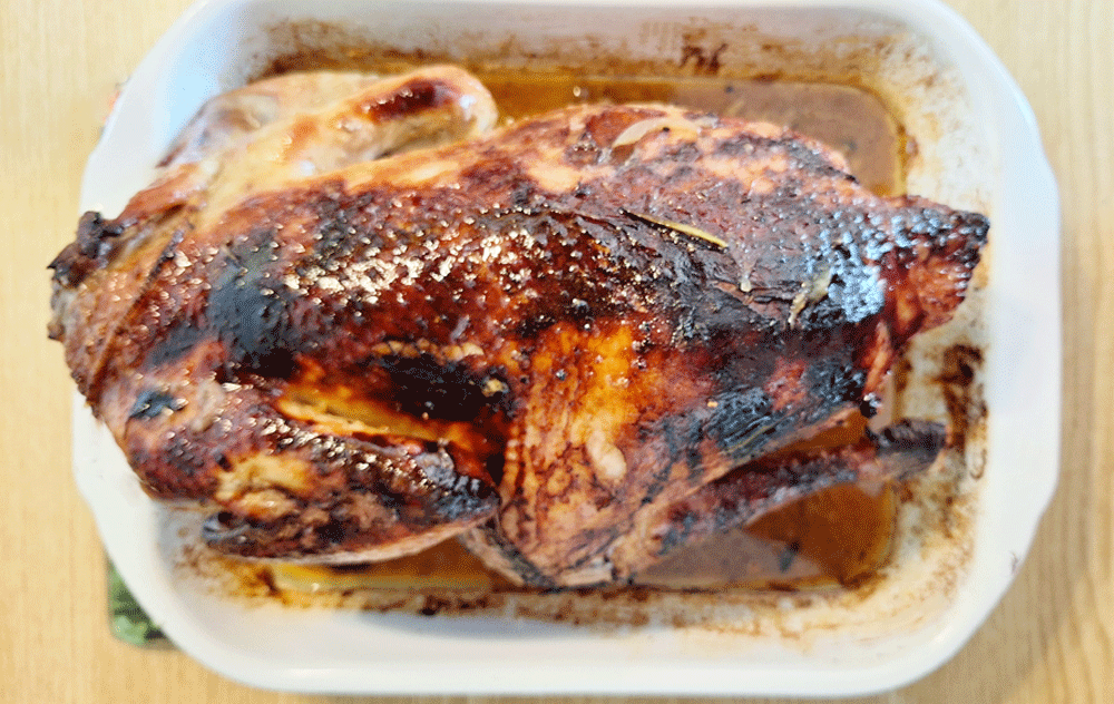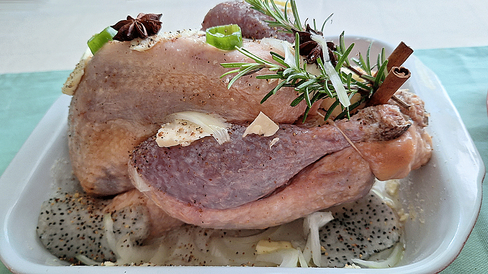 Côté arrosage, je procède sensiblement comme pour un chapon cuit au four. Une pintade à la chair desséchée par manque d’arrosages se remarque tout de suite.