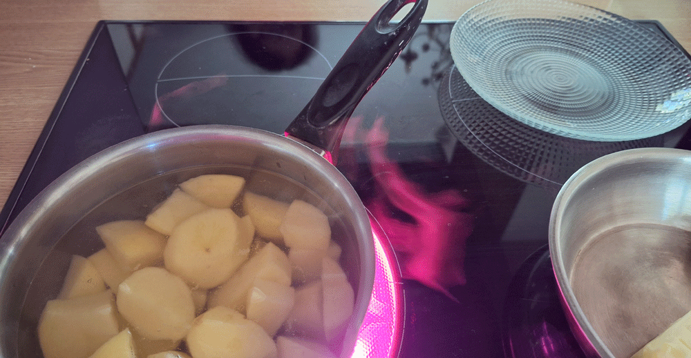 Bien délayer et couvrir avec un couvercle. Cela va permettre de réchauffer en délayant la purée avec quelques c. à s. de lait, avant que je la retravaille à la poche à douille.