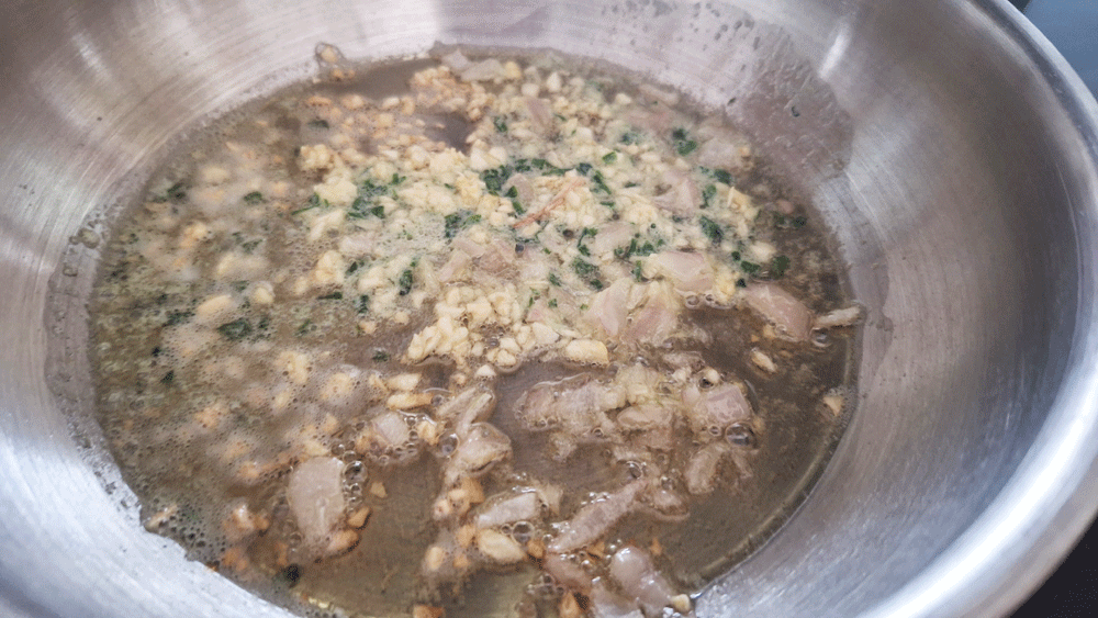 • 1 échalotte coupée en rondelles, 2 gousses d’ail finement hachées