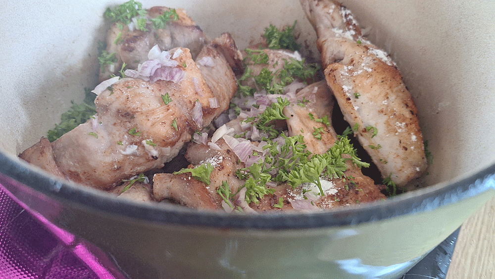 Ici, évidemment, une cuisine mijotée qui ne saurait se passer ni de champignons frais ni d’un bon vin blanc, également. Aimez-vous cuisiner le lapin ?