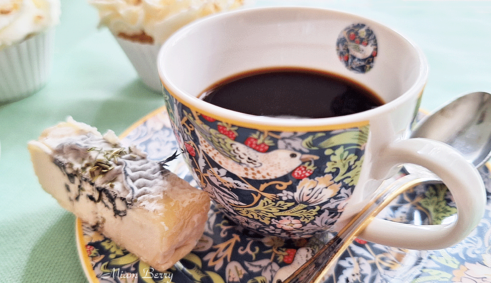 Eh oui, aucun impair ! Le fromage peut tout à fait accompagner une tasse de café, faire ainsi voyager entre textures et saveurs respectives dans un terroir qui serait à mi-chemin entre la saveur laitière et une part fleurie de printemps – ou autre. Un beau rendu avec ce service à café William Morris et, allant ainsi, le goût subtil des fleurs sauvages et le crémeux du lait : bleuet, pissenlit, mauve, trèfle. Chacune offrant ses propres arômes et coloris, idéalement assorties.