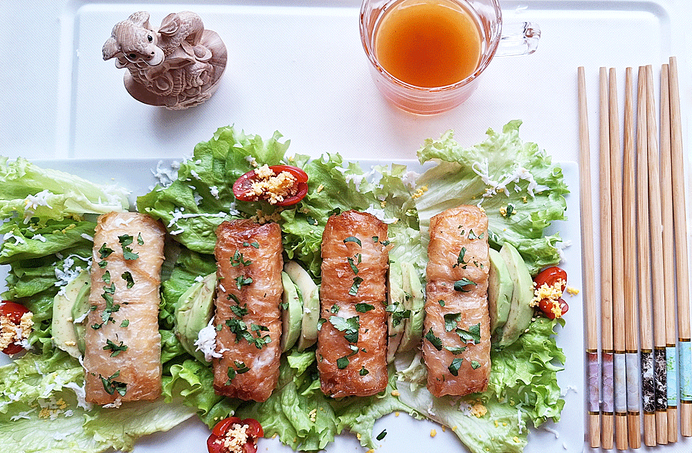 Ce plat emblématique et très incarné parmi ceux de la tradition. D’une finesse très appréciable, il peut être garni de bien des ingrédients tous aussi succulents les uns que les autres, mais souvent, avec du poulet (comme ici). On en retrouve la trace en 1740, connus notamment sous le nom de « rouleau impérial » : cela vient du fait qu’ils étaient servis uniquement aux rois et aux nobles autrefois.