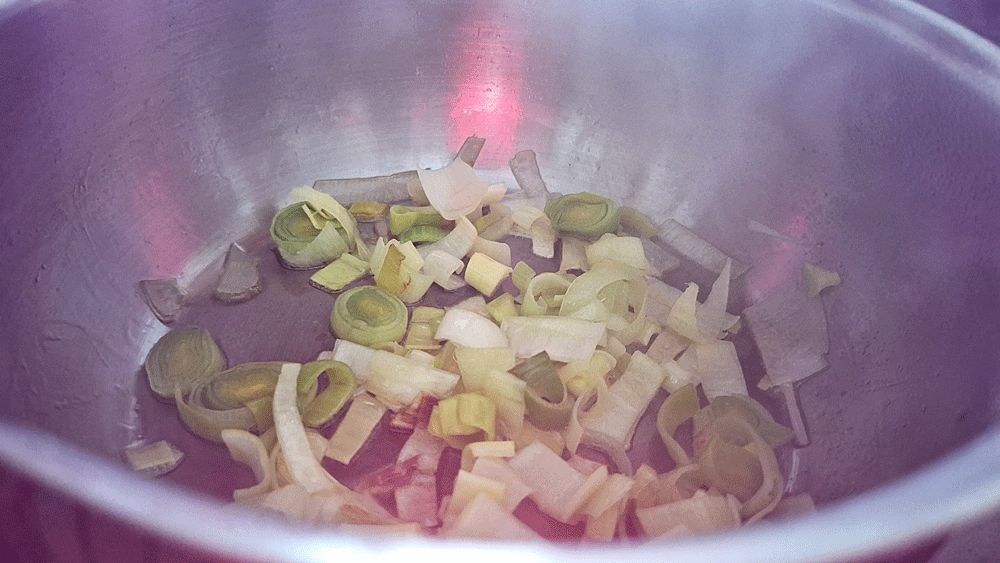 • 5 tasses de bouillon de légume + 1 p. de fumet de poisson – 1 blanc de poireau