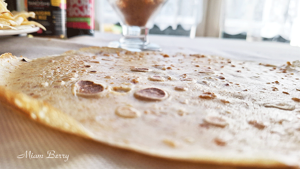 La poser sur une planche à découper en attendant le dressage du plat. Recommencer de la même façon les 3 crêpes suivantes.