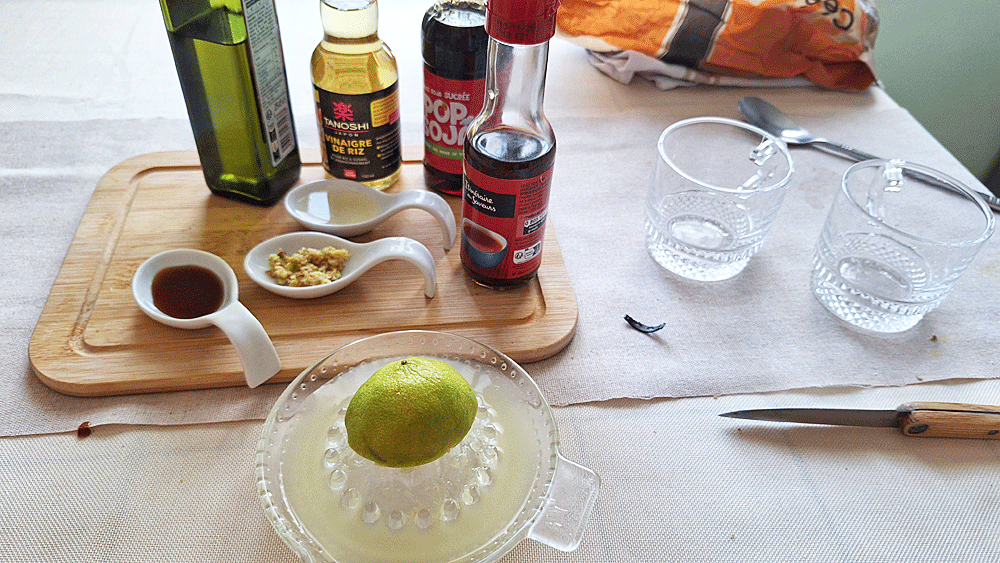 J’avais tellement à faire entre toute fin janvier et début février que j’ai délesté un peu de mes initiatives afin de me consacrer davantage à la réalisation des plats principaux. Ils furent très appréciés, servis frais à l’apéritif. Certes, mieux vaut leur proposer une petite sauce spéciale sushis que le Coteau du Layon. Une sauce à base de vinaigre de riz, ou bien spéciale sushis. Quoi qu’il en soit, plus ils sont frais, plus vite ils s’imbibent de sauce d’accompagnement.