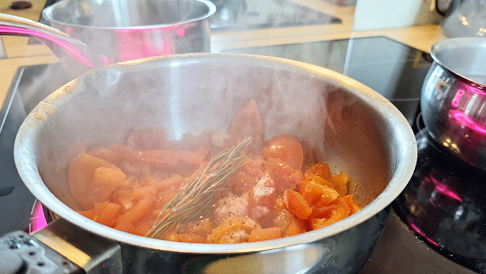 Faire mijoter quelques minutes l’ensemble. Rectifier au besoin l’assaisonnement.