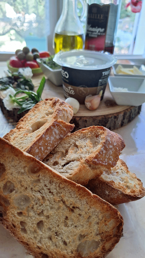 1. Le pain : Commencez par trancher votre pain et le faire griller légèrement, en l’ayant préalablement badigeonne à l’huile d’olive (au pinceau). L’objectif est d’avoir une croûte dorée qui apportera du croquant.