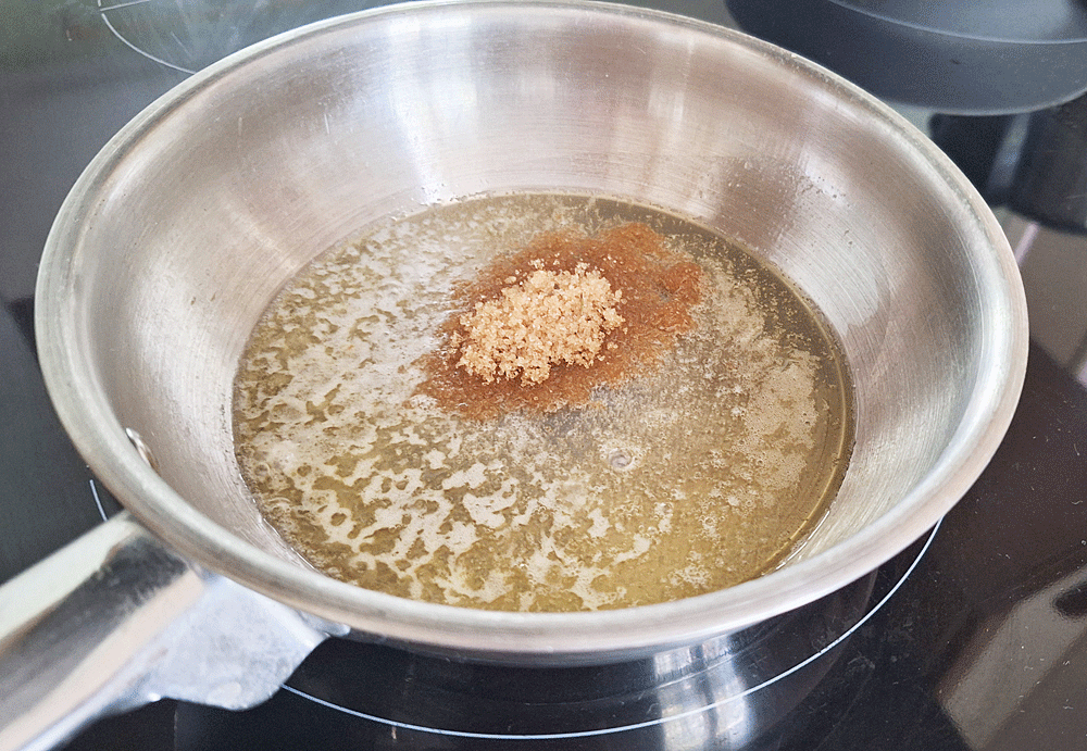 3. Dans une poêle, faire fondre le beurre à feu moyen. Ajouter le sucre, le jus du citron et remuer jusqu’à ce que la cassonade soit fondue. Ajouter les carottes dans la poêle et les faire sauter en remuant, pour bien les enrober de glaçage. Ajouter le thym, l’épice, assaisonner et rectifier au besoin. Laisser cuire 3 à 5 mn jusqu’à ce qu’elles soient brillantes et légèrement caramélisées.