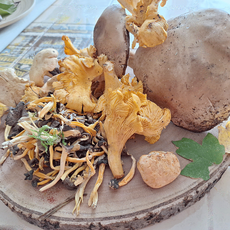 • Procurez-vous 300 g de champignons : girolles, pieds de mouton, cèpes, chanterelles jaunes. Choisissez selon vos goûts.