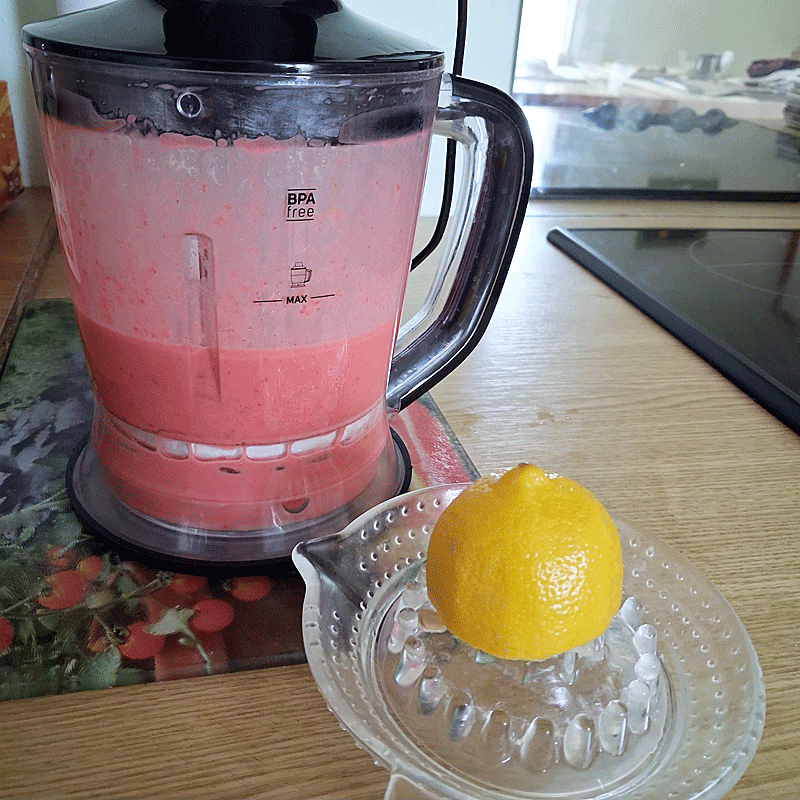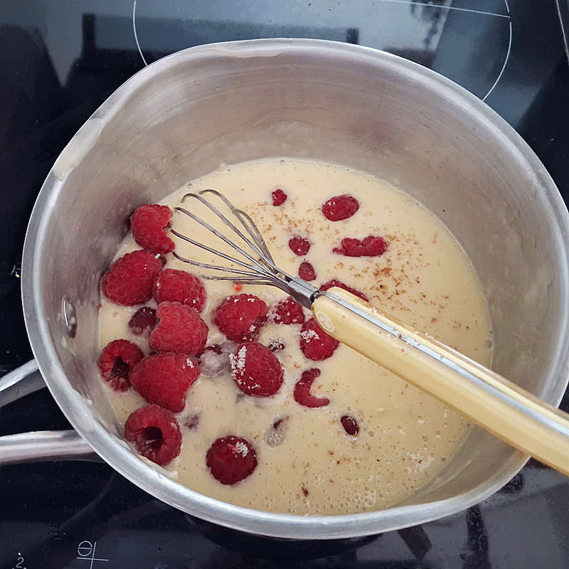 3. Ajoutez les framboises et un filet de jus de citron. Salez, poivrez.