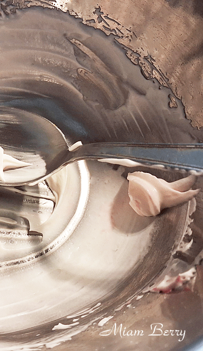 °Je terminais la préparation du dessert en montant une légère crème fouettée sans adjonction de sucre : en ajoutant un colorant alimentaire liquide bio de Select Arôme. Je vous partage le lien direct, si cela vous intéresse.