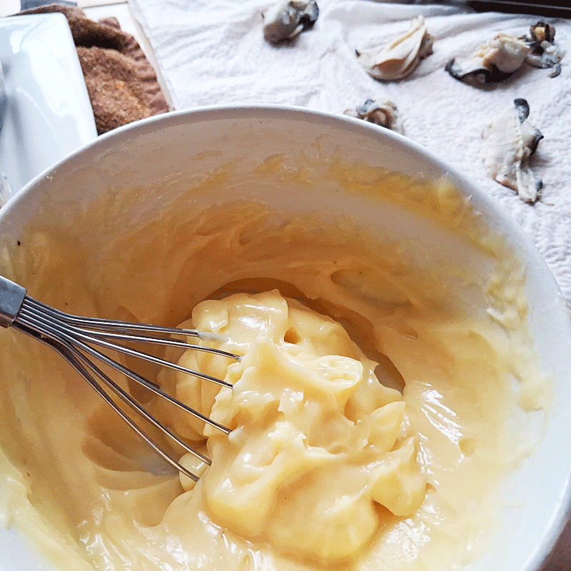 2. Préparez une mayonnaise. Mélangez le jaune d’œuf, la moutarde, du sel et du poire. Incorporez peu à peu l’huile en fouettant pour obtenir une texture ferme. C’est ici que vous ajoutez à votre goût soit l’estragon haché ou bien le persil. Mélangez puis réservez au frais.