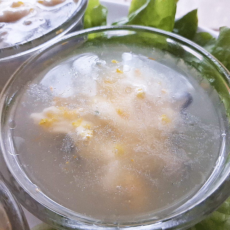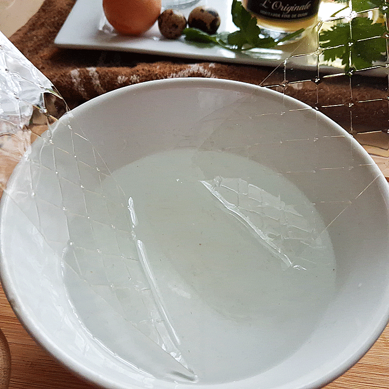 1. Dans un bol d’eau froide, mettre à ramollir la gélatine. Hachez très finement 2 brins d’estragon ou du persil en remplacement. Ouvrez les huîtres, les détacher en recueillant leur eau dans une casserole. Y faire pocher les huîtres 10 secondes, les égoutter à l’écumoire en laissant leur eau dans la casserole et les réserver sur du papier absorbant.