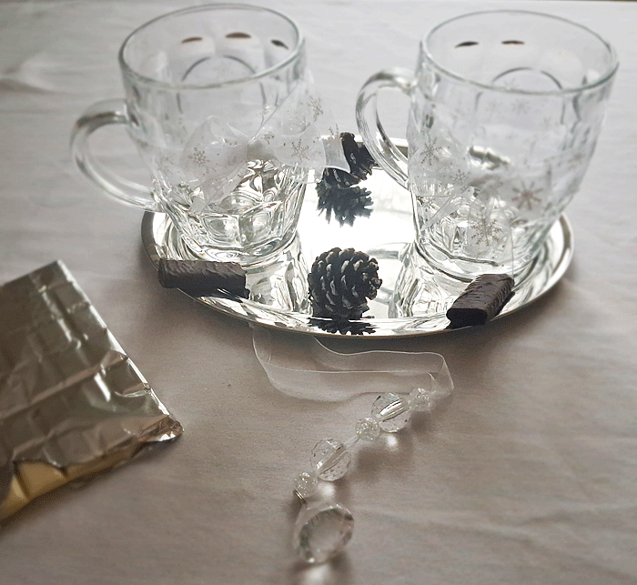 Vraiment très tard hier au soir, je rédigeais cette recette pour que vous la parcouriez en ce dernier jour de décembre… D’un froid mordant ( – 1, – 2 généralisé), la neige qui danse dans certaines régions, et une tasse de chocolat chaud dans les mains.