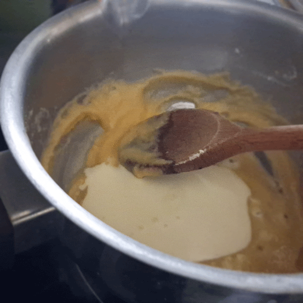 2. Dans une casserole, faire fondre le beure, puis incorporer la farine préalablement tamisée, délayer avec la crème.