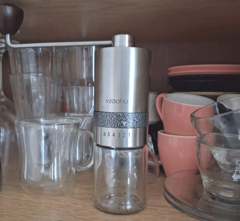 Si vous en avez assez de transformer votre cuisine en atelier de sculpture pour obtenir la mouture parfaite, ne cherchez plus : ce sympathique petit moulin, broyeur portable à l’envie – avec engrenages chapeautant un récipient en verre transparent – me simplifie la vie, depuis son arrivée à domicile. Alors pourquoi ne ferait-il pas de même, pour mes chers aficionados du café, ou bien vous, lecteurs en visite !