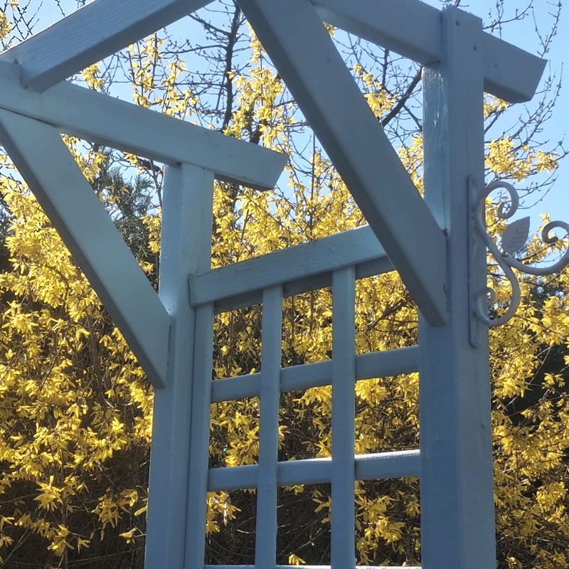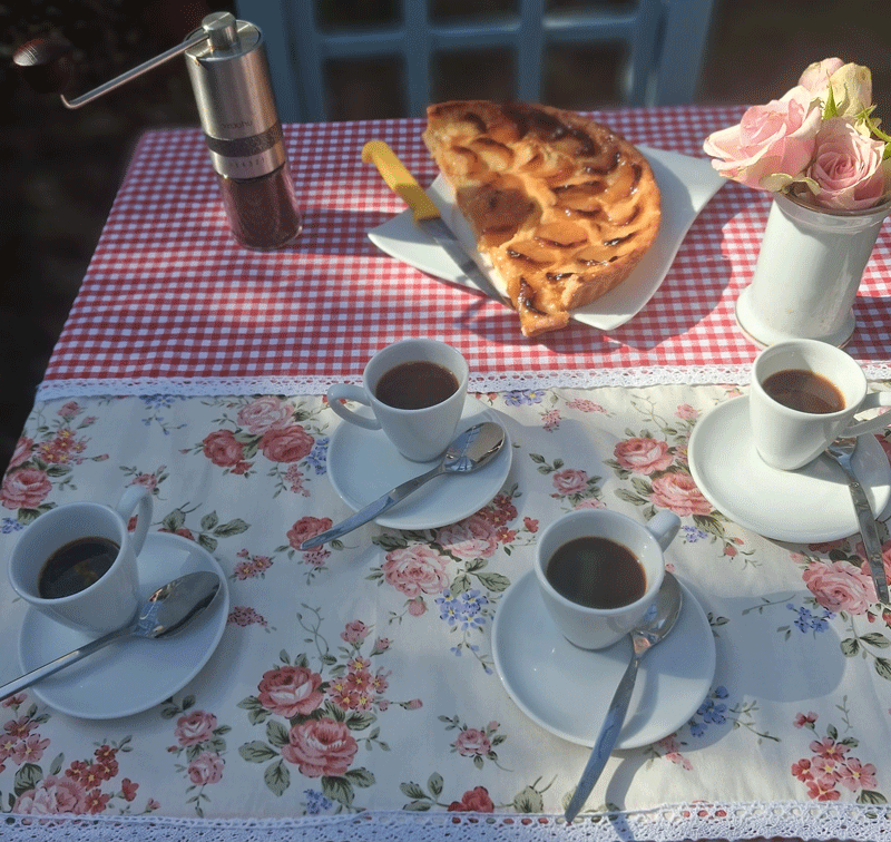 On parle à voix douce, comme si le forsythia écoutait. Un peu plus tard, les miettes sur la nappe, les cuillères qui tintent, le parfum du café de Colombie… tout parait suspendu dans cette lumière jaune qui se détache d’un franc ciel bleu. Un moment encadré par le printemps naissant, un instant simple et une promesse tenue avant l’heure.