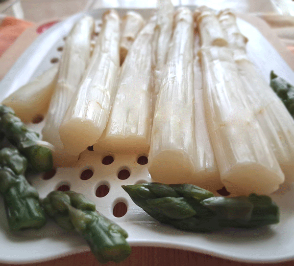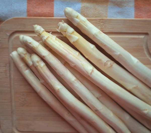 Côté vin en cuisine, j’optais donc non pas pour le « quel vin avec le plat », mais quel vin pour magnifier l’asperge blanche des Landes. Amis, pensez-vous que j’ai eu raison d’écarter le réflexe Jura ? Ça, c’est pour la morille. J’ai cherché le centre de gravité de mon panier du marché… l’asperge des Landes.