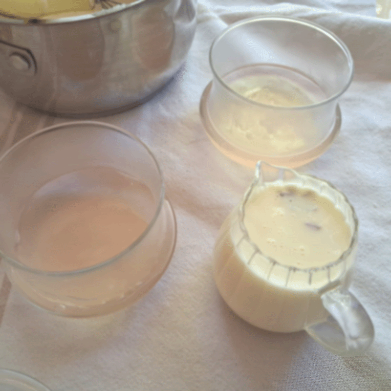 Un matin où le jardin chuchote encore, cueillir quelques fleurs de lilas – pas trop, juste ce qu’il faut pour ne pas froisser l’arbre, et qu’il vous pardonne dès le retour de l’été. Telles deux verrines qui respirent en même temps que le jardin, au pied de l’arbre, sinon rien. Ou plutôt, avec une limonade en écho, parce que mon jardin, aussi, se boit ! 😄